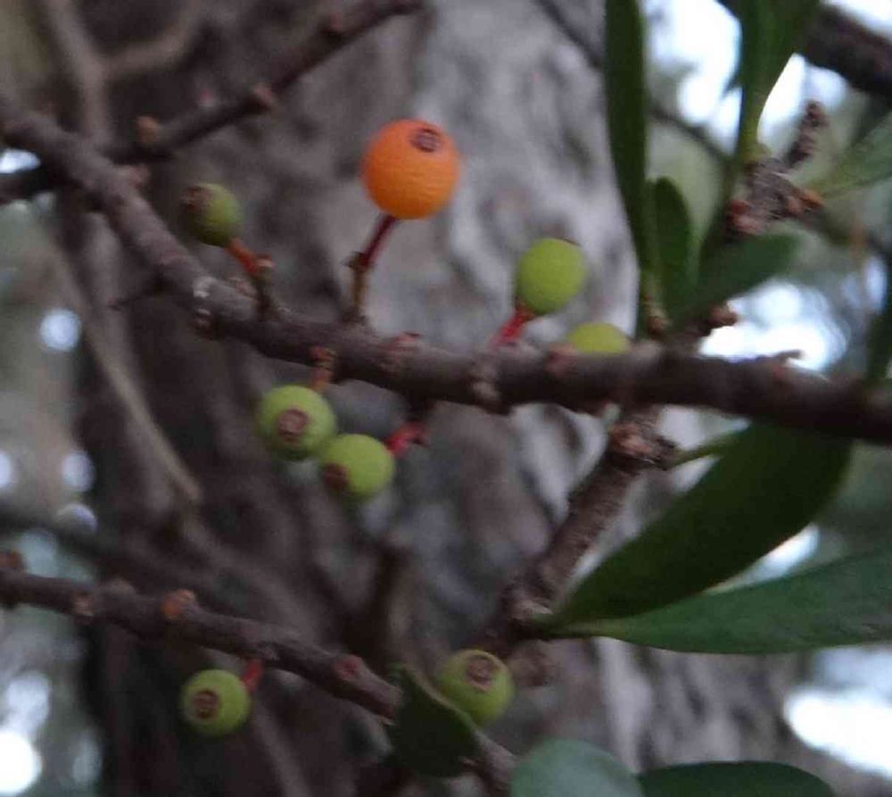実の時期は3月過ぎらしいのでまだほとんどは青いままです。