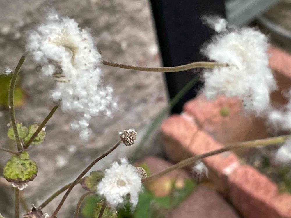 本体から離れても、綿毛同士が繋がって崩れ落ちるような姿は独特ですね。