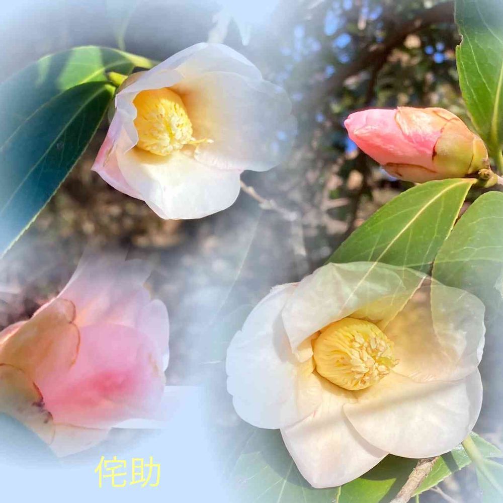 昨年見た白侘助の魅力に嵌り今日初めて見たこの花は一見白侘助?と思いましたが優しい淡いピンク系のカラーで蕾はピンク。