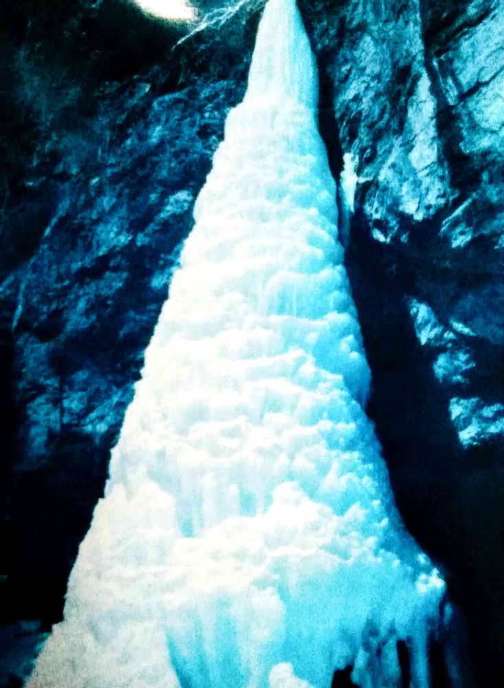 此の氷柱は、滝の落ちる水が💧凍って出来るそうです。