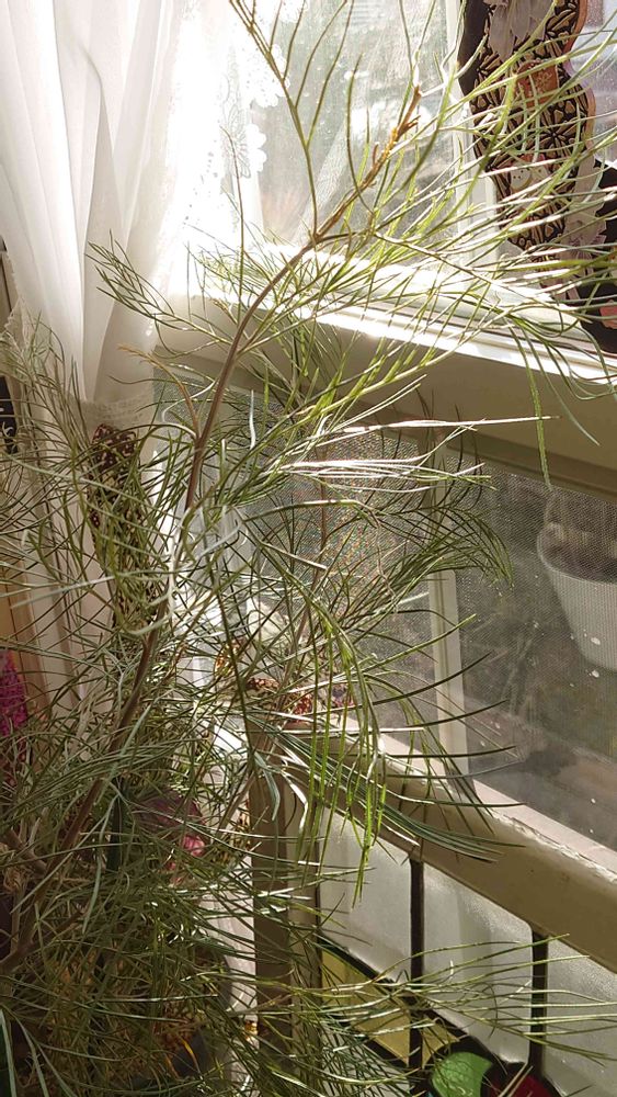 寂しそうに外を見てるグレビレア〜このコだけは寒さに弱いらしいので過保護✨🤭