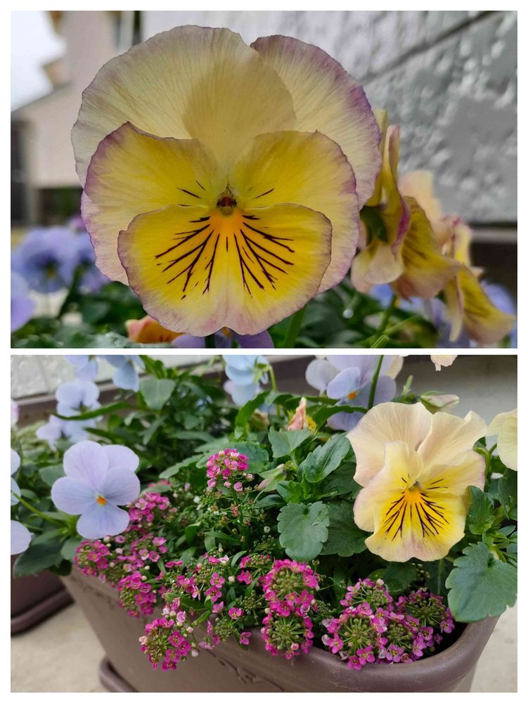 アリッサムとパンジーの寄植え可愛い色合いですね。♥️💛♥️💛🌿