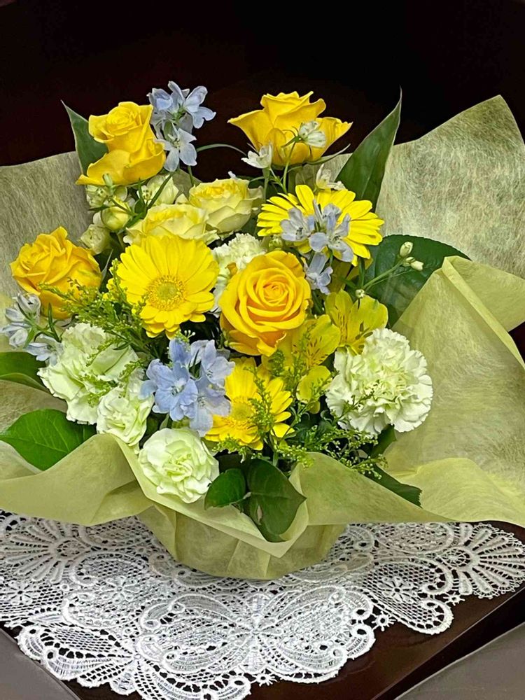 お優しい御主人様からのビタミンカラーのアレンジメントとても素敵ですね💛💛💛💛