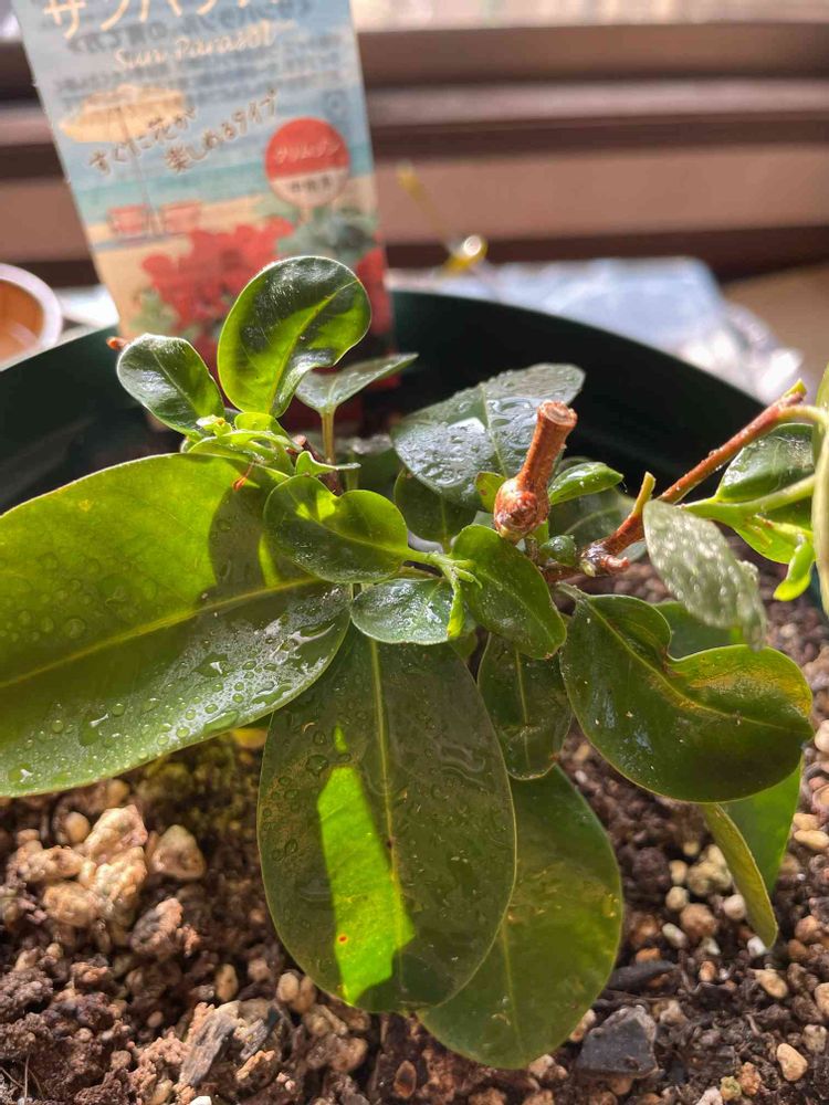 冬越し中のサンパラソル、なにか白い物が付着してるな~と思いつつ、新芽が出てきててヨシヨシと思っていたんですが…
