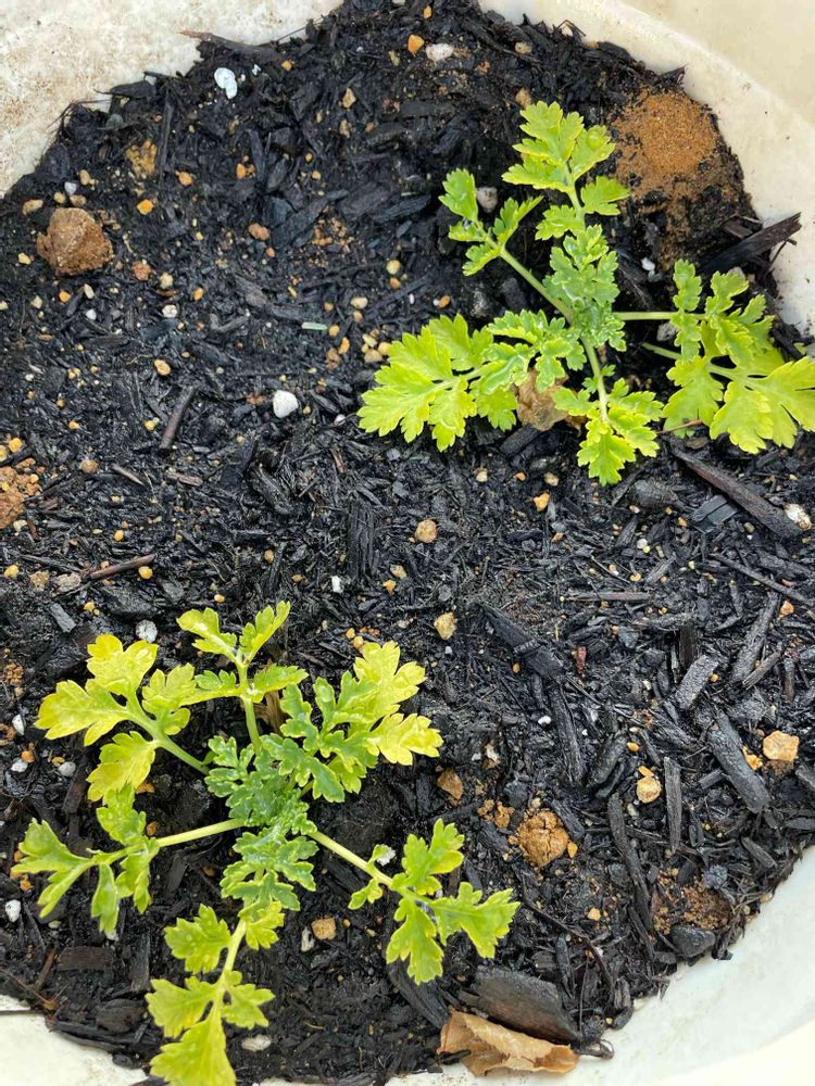マトリカリア種を植えたら2つだけ芽🌱🌱が出てきました😄
