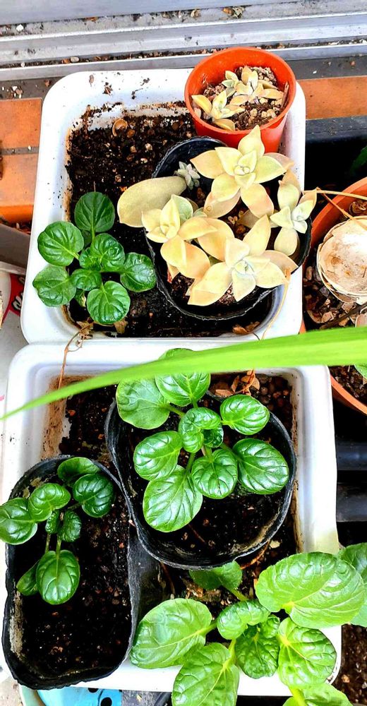 寒いのと土の面積が小さいからか成長が今一つのタァツアイと多肉ちゃん(朧月)