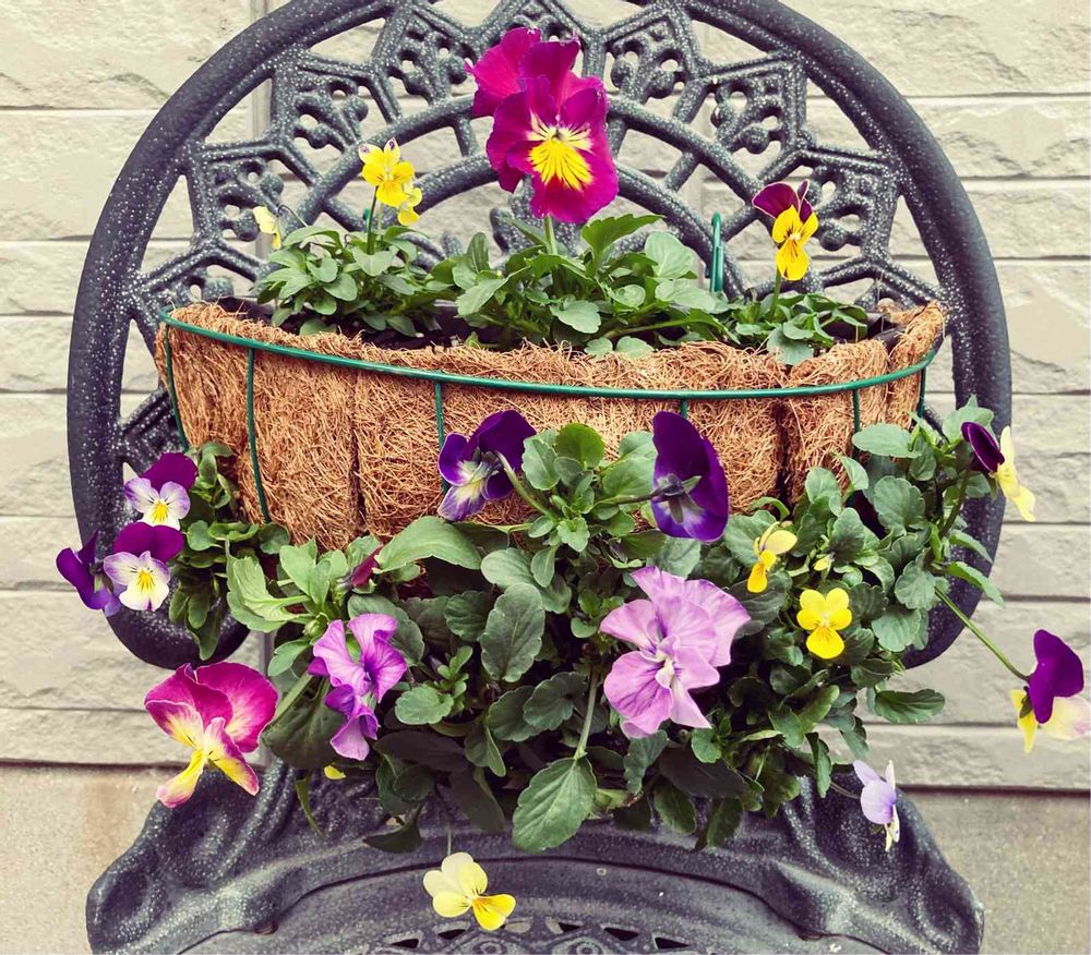 お正月休み中に、種まきっ子たちをハンギングバスケットに植え付けました🌸切り目を入れて、側面にも植えたよー✨