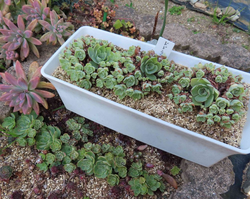 ロゼットの大きさや群生の様子はあまり変わらないけど,地植えの方が葉焼けが多い。だけど,地植えの方が強い風にさらされているせいか,外側の枯れた葉がほとんど見当たらない。