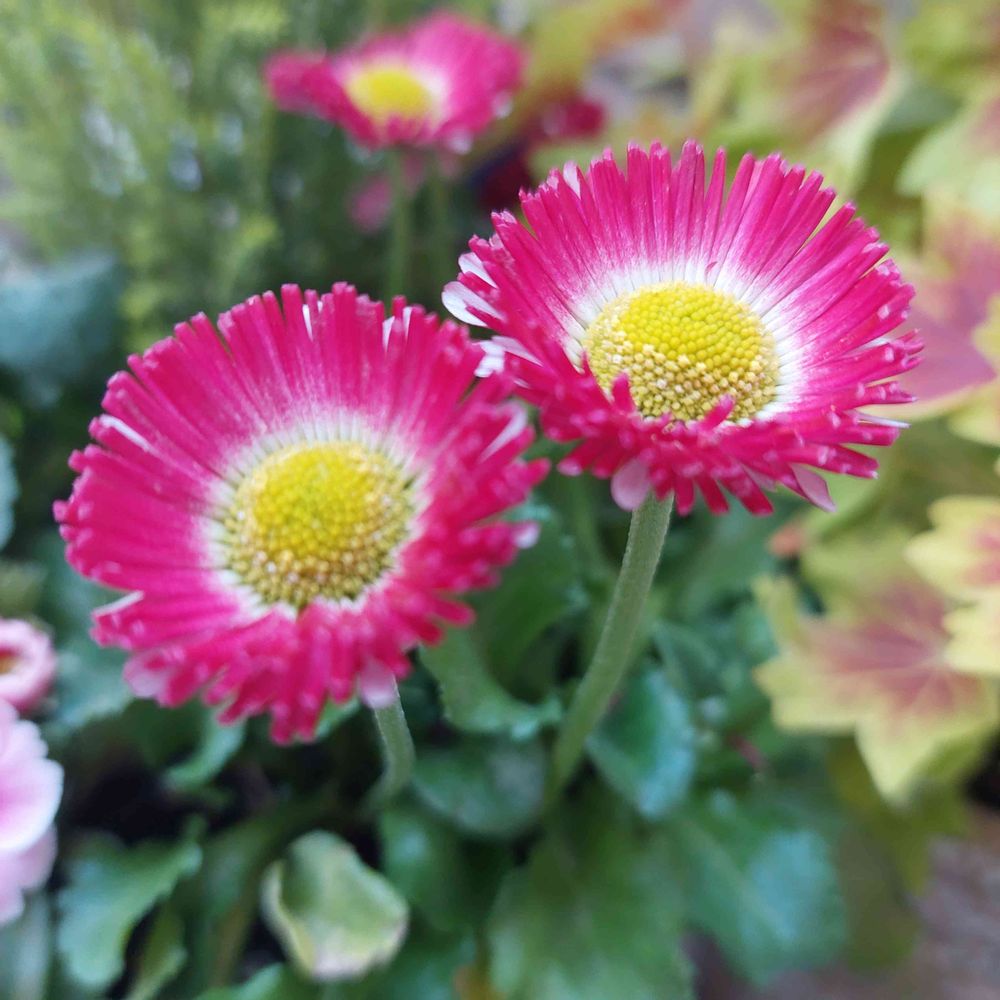 Googleレンズで調べてみますと、ヒナギクと出ました🙇
