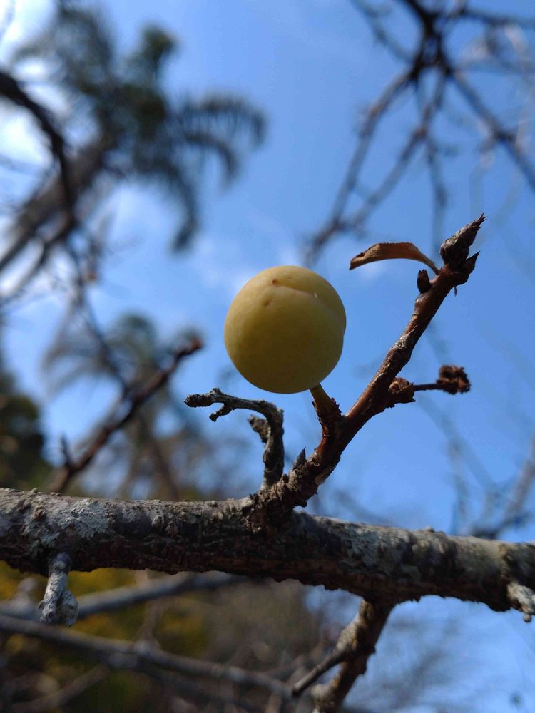 イグリモモの花が秋に狂い咲きした後、葉っぱがそこそこ繁って散ったと思ったら、実が生ってた!!!😳