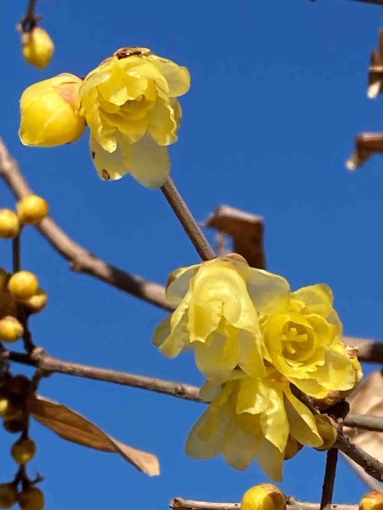 青空にロウバイのビタミンカラーが映えて素敵‼️
