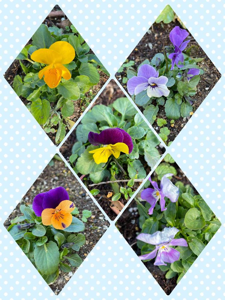 溢れ種から大きくなってきたビオラちゃんたちです♬庭先で毎日凍っては溶けて繰り返して〜ちっちゃなおじちゃまたち〜ガンバレ〜📣💕