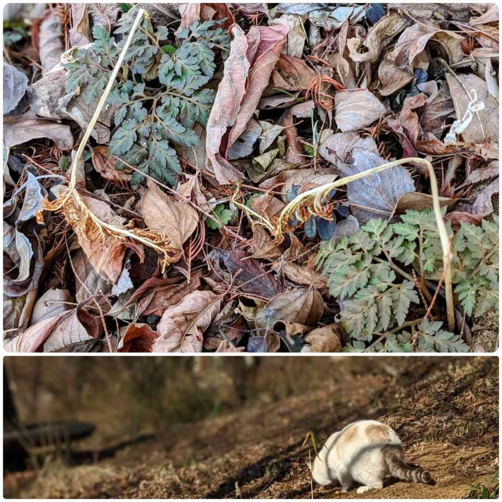 向こうでチロ助手は熱心に何かを調査中…🐈🐾🔍