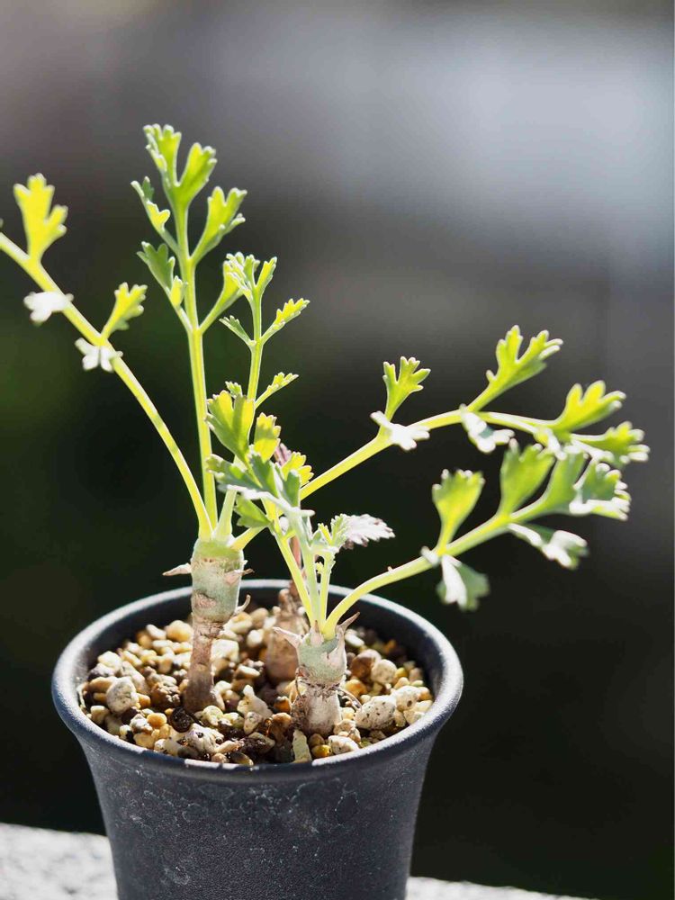 冬型塊根なので秋になると動き出して新芽を出すペラルゴニウム