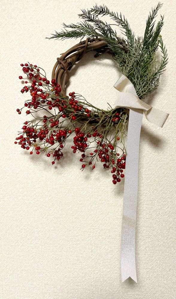 もう少し違ったアレンジにしたかったのですが ノイバラがリースになかなかつかず💦
