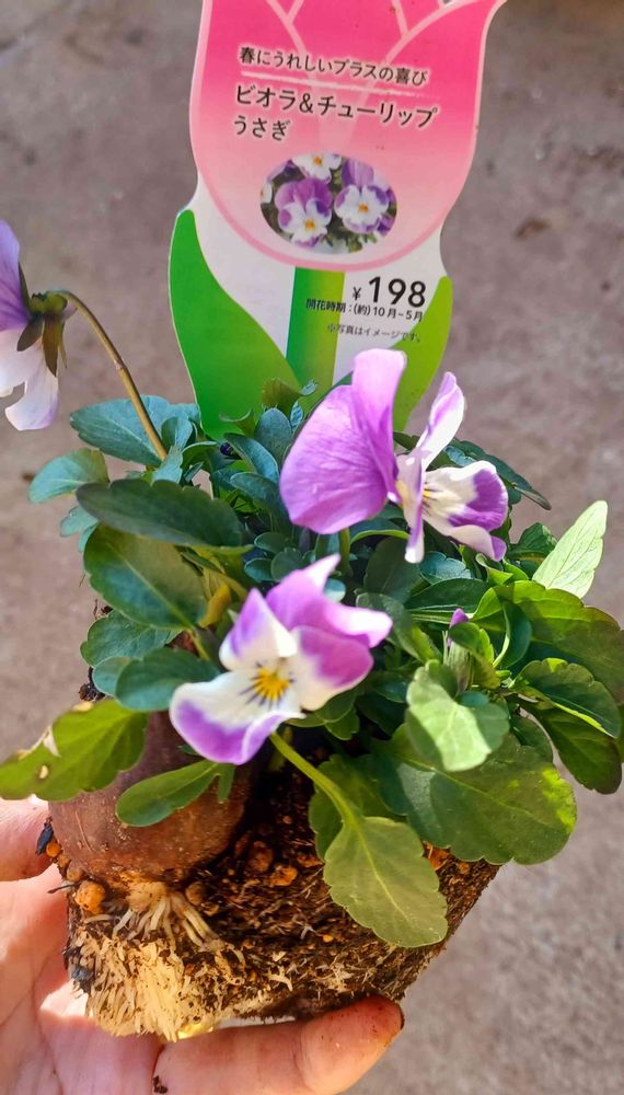 ☝️…数日前にホームセンターでチュウリップ🌷の様な咲き方のビオラを購入…やっと今朝植え替え「😳('_'?) スゴイまた、おまけ~大きな球根が付いてる~🙌」…と、思い込みが強いお年頃~😆…👀👀改めて確認~「ビオラ&チュウリップ…」でした~そんなのあるんだ😅