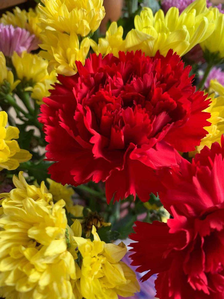 黄色の菊と真っ赤なカーネーション