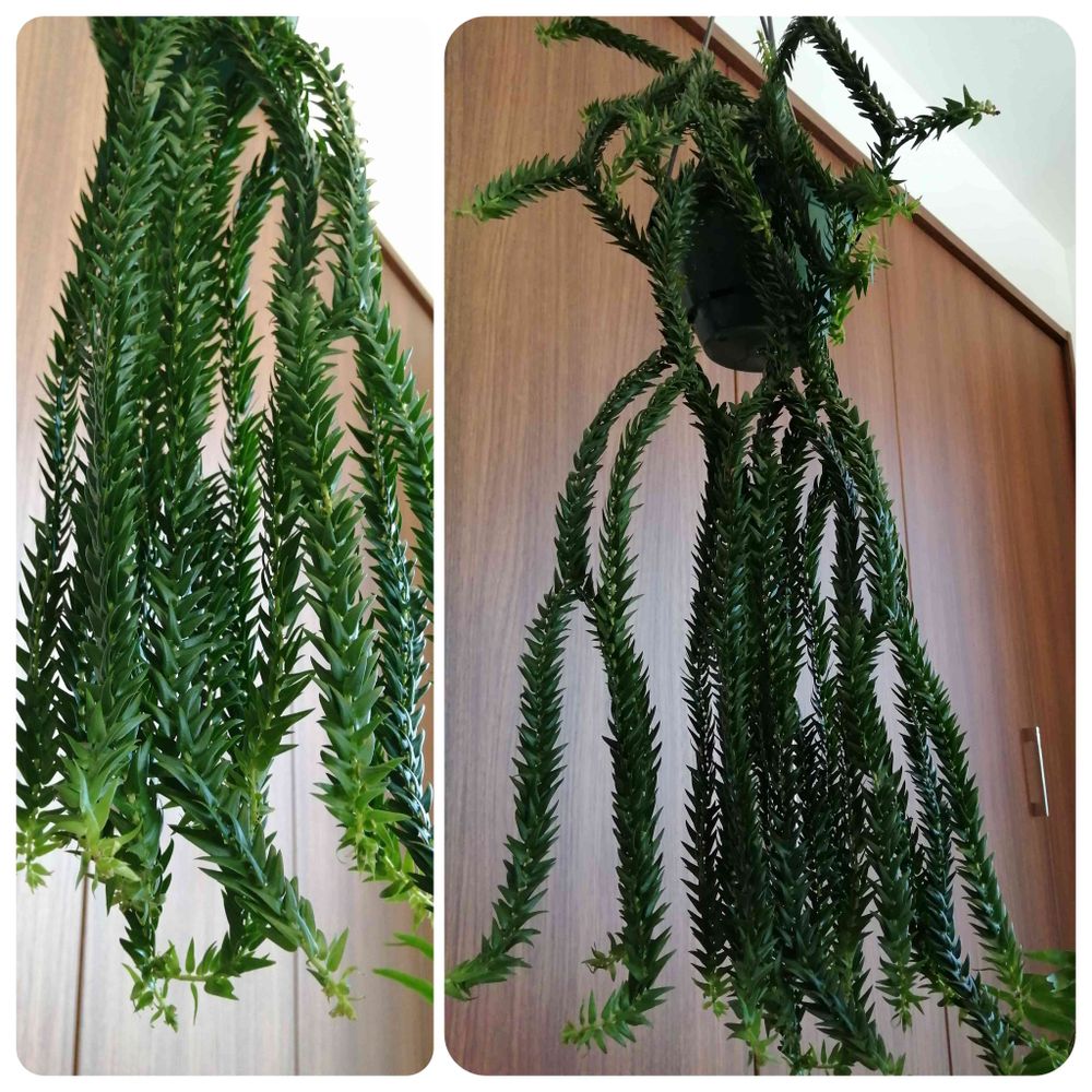 ゴエベリーに似てるけど葉っぱの向きが逆です。まるで🐲龍?のようです。緑💚が濃く見た目とは違い柔らかいです。会場で見たときより大きい長い〜😲!