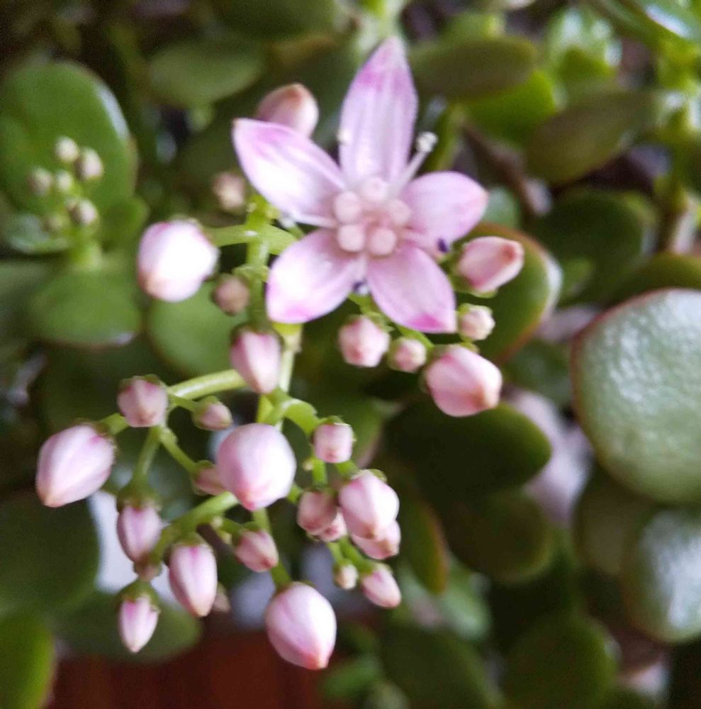 金のなる木咲き始めました可愛いピンクの花です(๑⃙⃘ˊ꒳ˋ๑⃙⃘)ᵗᑋᵃᐢᵏ ᵞᵒᵘ ¨̮