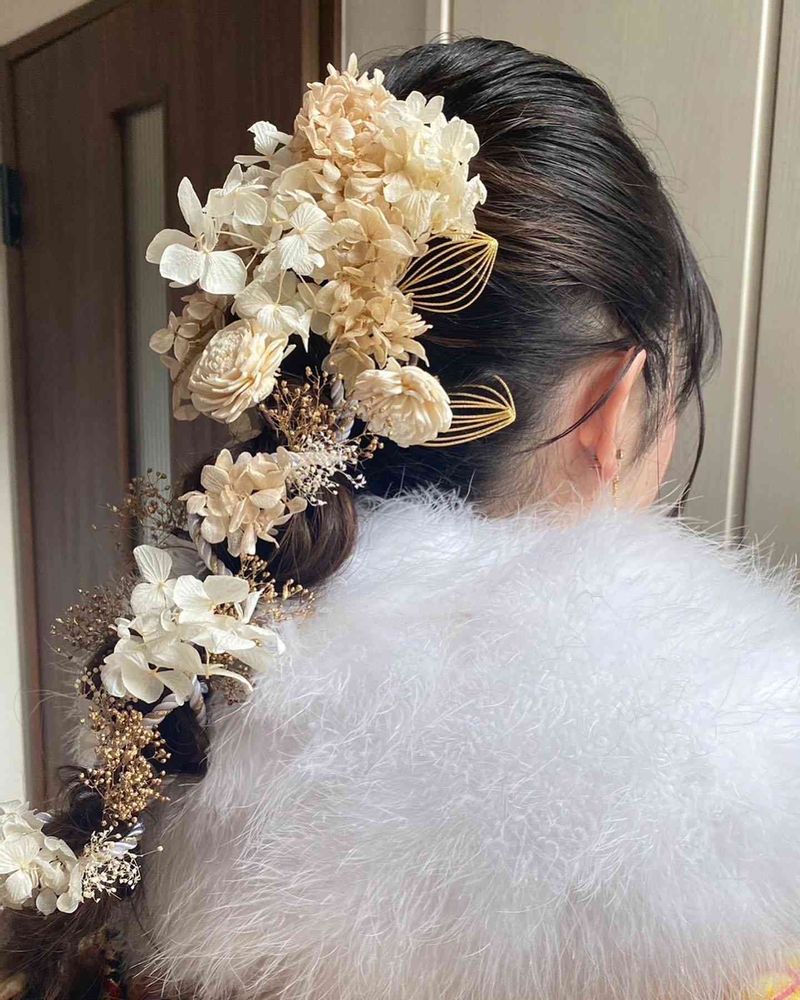 自分の時の違って、色々と素敵な髪飾りやアレンジがあってちょっと羨ましいです。笑😊