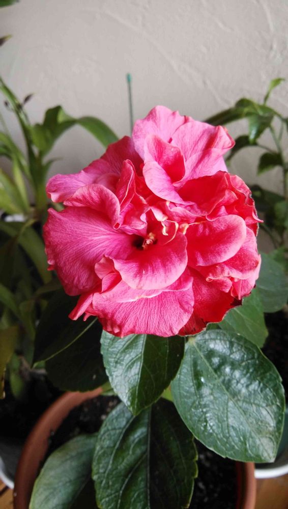 リビングに避難していた、八重のハイビスカスが咲きました!🎶