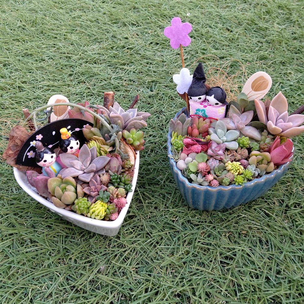 お正月の寄せ植えを手直ししようかと思ってましたが、お雛様🤩🤩🤩いいアイデア‼️しかも、可愛い💕
