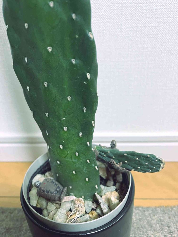 ディスカウントのサボテンをお迎えしてしまった、、品種は不明でやたらと長い子です。多分スミエボシ。先っちょの子株が根元に落ちていたので差してみよう、、
