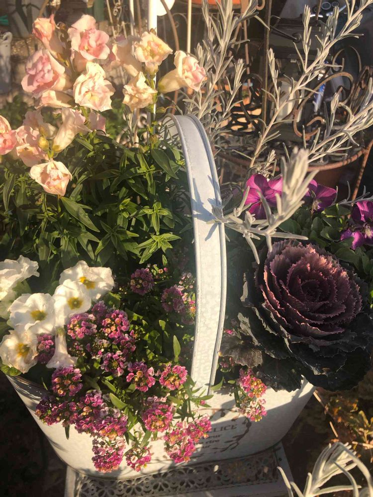 薔薇師匠にいただいた花で、寄せ植えを作りました♪優しい色合いで気に入っています😊