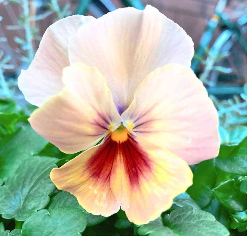 このパンジーさんはベースは淡いピンクベージュで中心には紫や赤が、周りは黄色も少し入っていて本当複雑な柄です😊