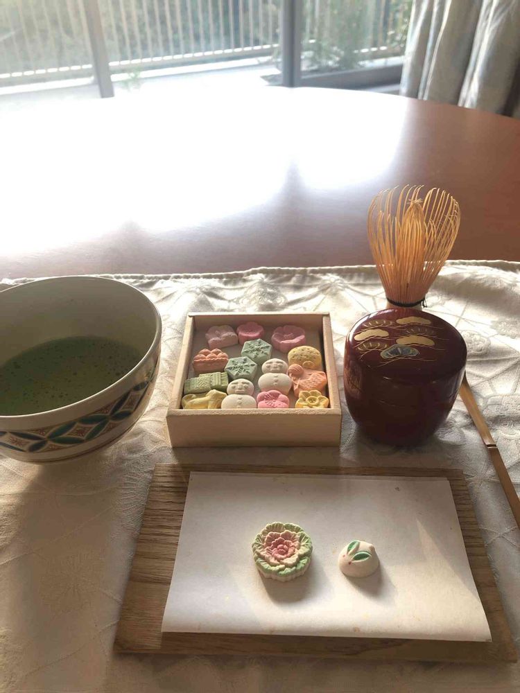 我が家でもお正月にアメリカの女性(孫の友達)が来られたので練りきりの和菓子とお抹茶で俄にお茶会をしました。