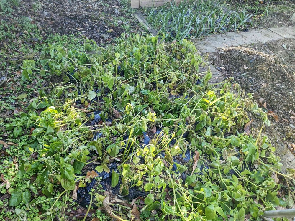 時期を遅れて→じゃがいもを植えました。年末迄元気でしたが霜のせいか…枯れ?💦屋根らしき物で霜よけをした方が良いか悩んでます。