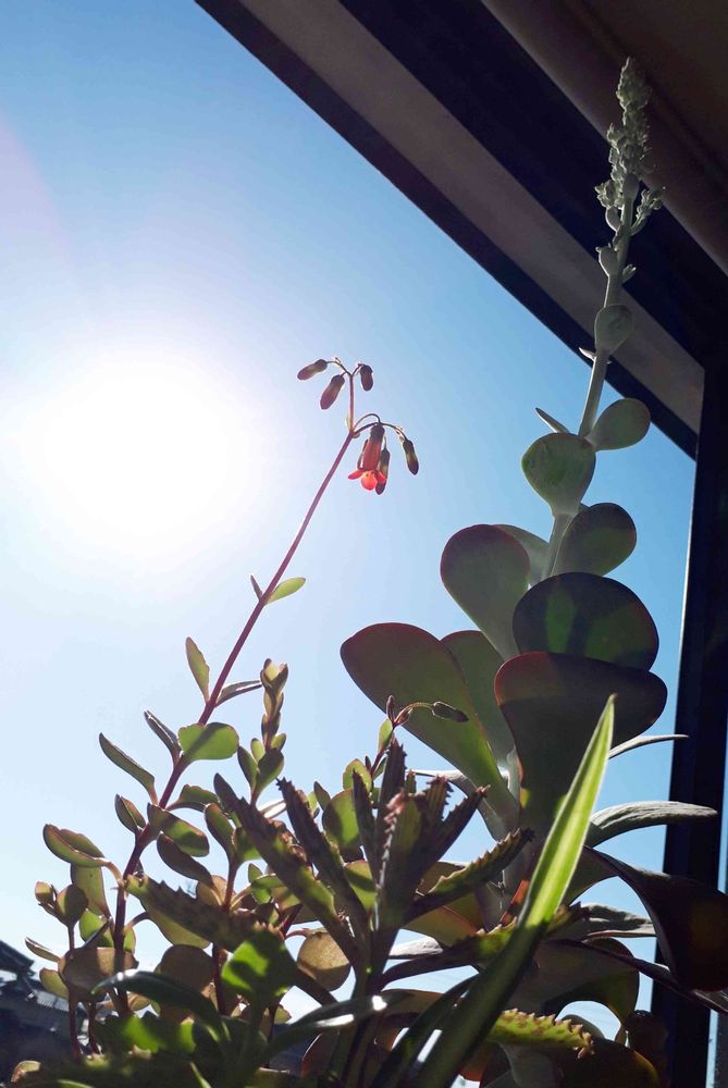 出窓にいる多肉達と久々の青空を一緒に📷✨したんだけど逆光で😅