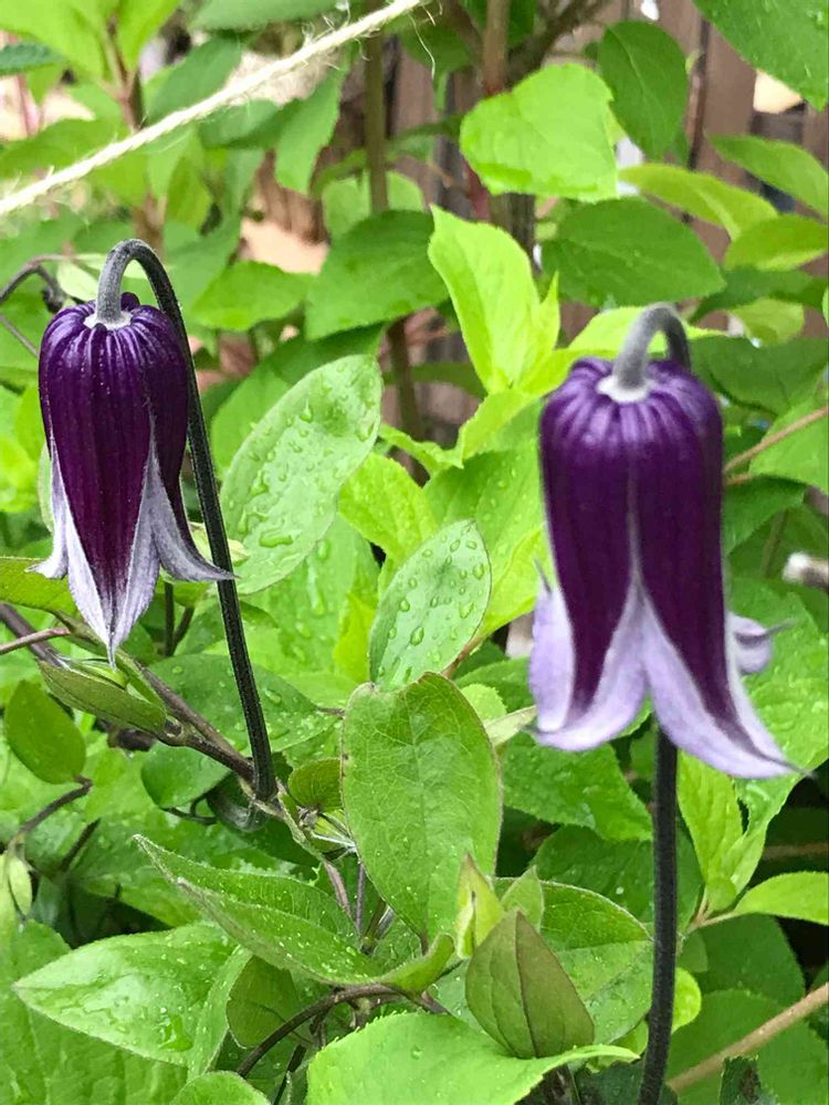 ピラミッドアジサイの新緑に濃い紫色が映えます