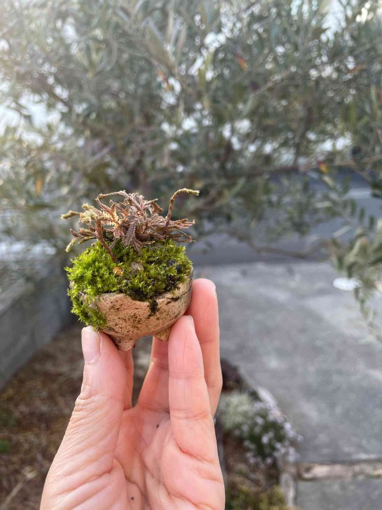 最近、山野草を始めました。旦那は盆栽、私は下草を学び始めました。 自宅で陶芸しています、豆鉢など作っています。の