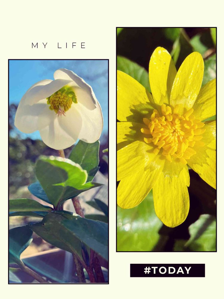 日差しが暖かい。風がふくたび花が揺れてしまいます💠今年お迎えしたクリスマスローズと古参のヒメリュウキンカ✳️🥰