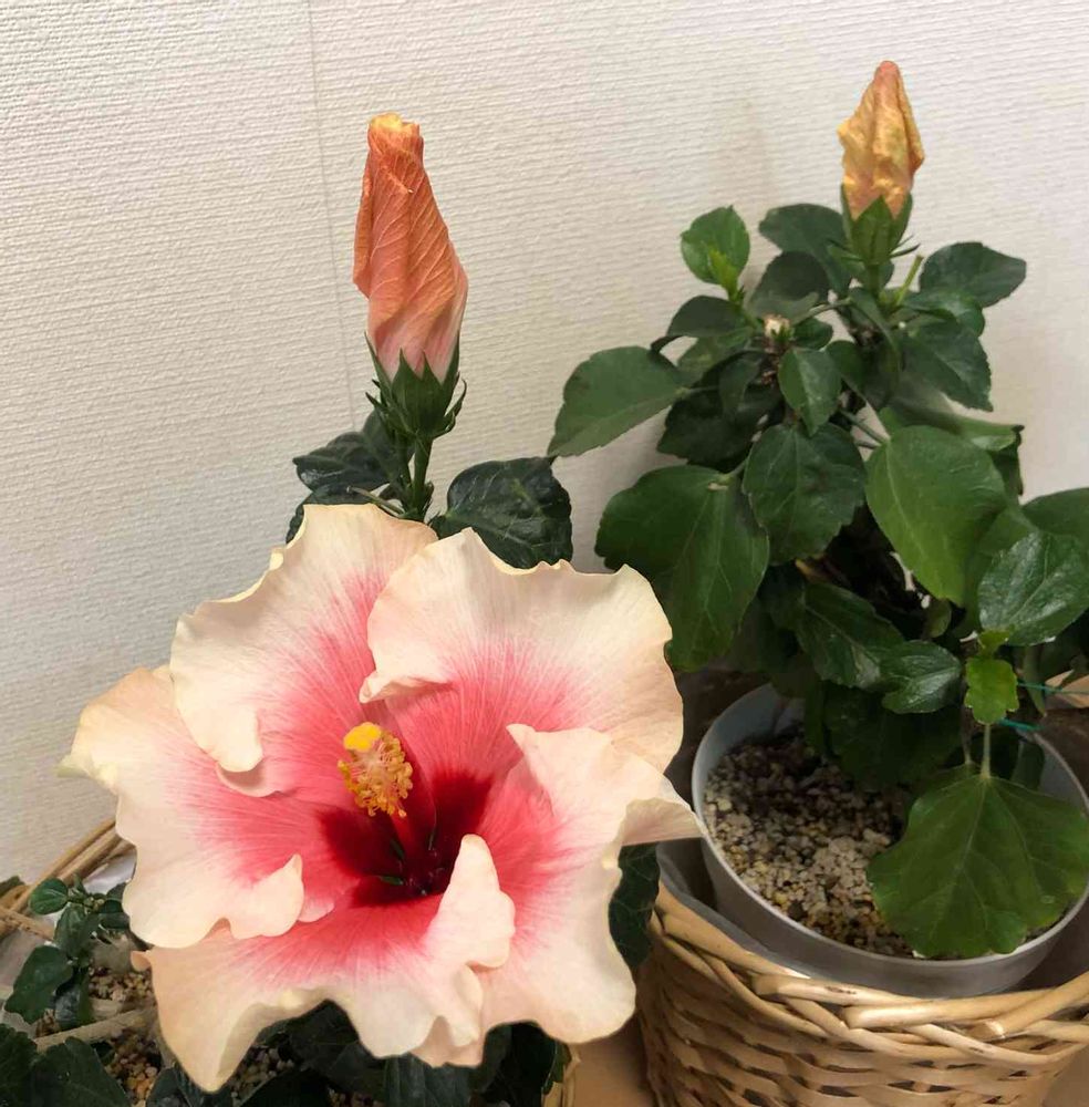 ハイビスカスが開くと冬の室内がぐっと楽しく華やかになります😍。
