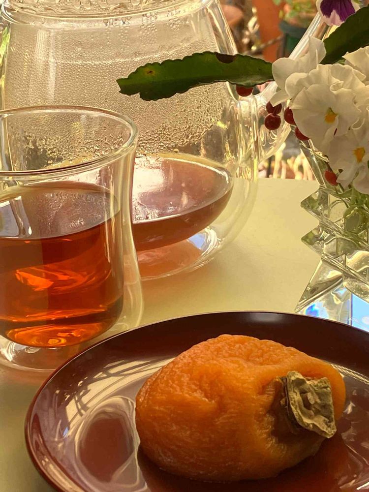 お菓子は富山の福蜜柿。紅茶はダージリンのストレート。