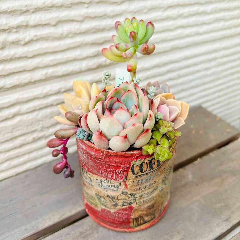 オールドアメリ缶⁉️なダイナーに似合いそうな寄せ植えちゃん🇺🇸👍