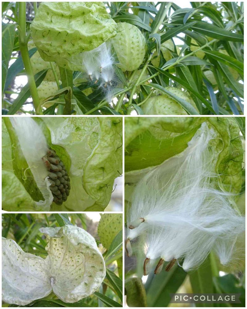 種子は多数、小さく、黒色、長さ約4.5㎜×幅2㎜、頂部に長さ約3㎝の絹毛状の白色の毛の束(種髪)をもつ。