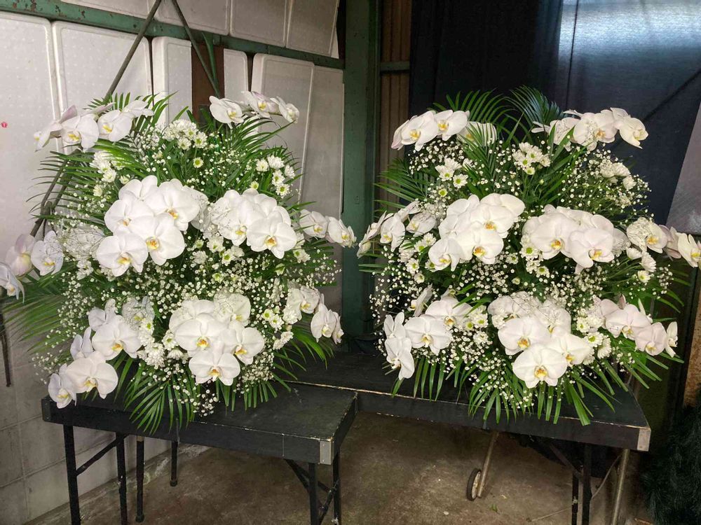 で、今日のお通夜までに、納品を完了する、胡蝶蘭のスタンド花を