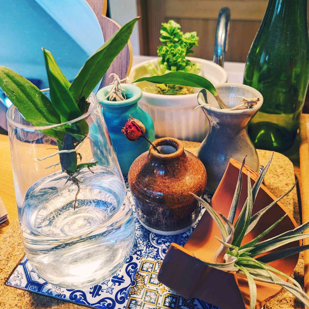 着生蘭の子株がポロッと取れてしまったので水耕栽培で育てています。