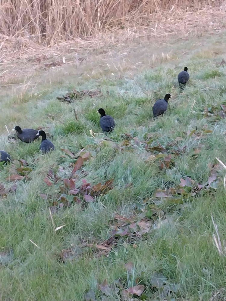🐦オオバンがふわふわモフモフの草を啄んで、その姿にほっとなごみます🥰