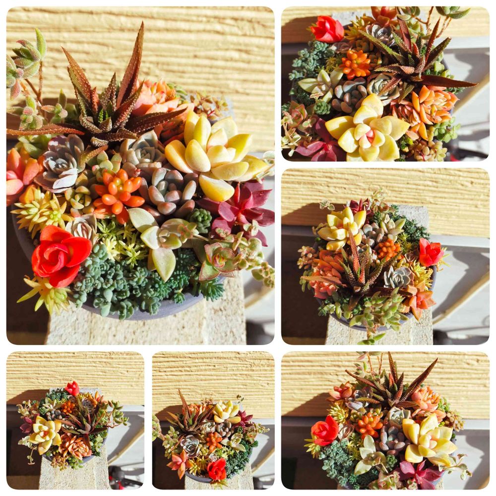 多肉さん綺麗に紅葉して お花の寄せ植えみたいですね❤️💛🧡🥰