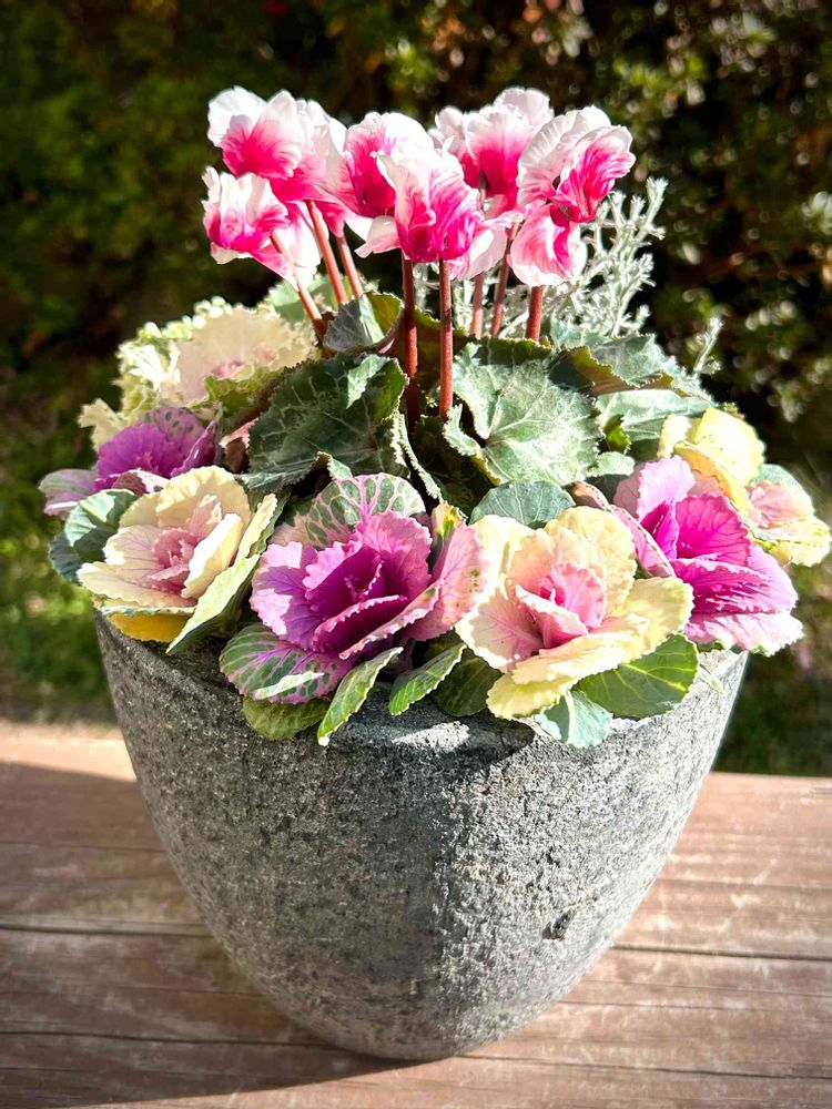 小振りの鉢だったので小さな葉牡丹がちょうどピッタリハマりました‼️