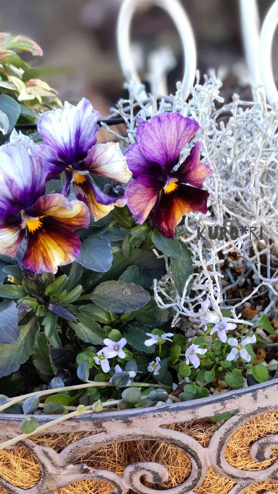 ヌーヴェルヴァーグの寄せ植えにこぼれ種で出てきたイオノプシジウムを移植させてました~💜