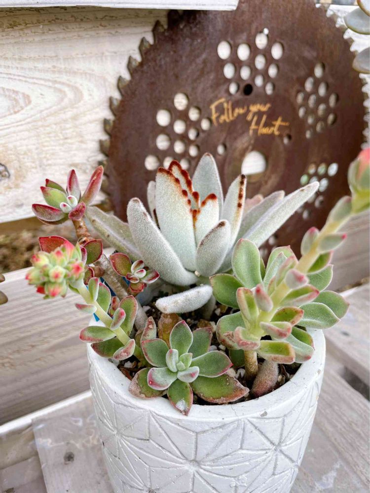 2019年 趣味の園芸で多肉植物を知る。 9月HCで寄せ植えに出会い購入 名前や育て方が知りたくなりGSを始め、多肉にハマる💕 2020年 着実に多肉が増え、多肉棚を自作 置場所が増えると、更に多肉も増える∞ループ😬 2021年 リメ缶作りも覚え、デコパージュやステンシルも素人なりに挑戦中🤭 ますます多肉の沼にハマり中⚠️ 2022年 多肉の数が増えていく中で、菌やダニに悩まされ、殺菌剤や殺虫剤を揃えました。覚える事が沢山で久しぶりにノートを活用中😬 2023年 猛暑で水遣りのタイミングが掴めず、せっかく増やした多肉も沢山★に💦管理できる範囲で楽しもうと思います👌 GSで素敵なpicや情報を得てこれからもタニラー生活楽しみます✨
