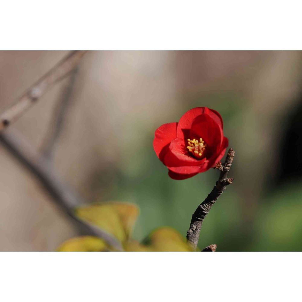 箱庭のボケは咲く気配は無いのですが、公園のボケはほんの少しですが咲き始めている花がありました。
