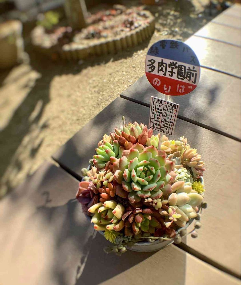 もりもりの多肉さんの寄せ植えにるるさんのピックの多肉学園がぴったりね(*,,˃ ᵕ ˂ ) イイネ♡