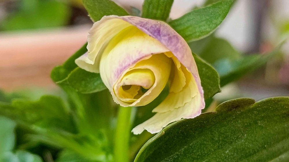 種蒔きから育てる、虹色スミレの3種類めは薄いクリーム色に縁取りにほんのり紫かな🤔