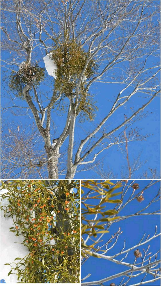 橙色の実のアカミノヤドリギだけが1ヶ所に集まっていて、多数派のマスカット色の実のヤドリギが混ざっていないのが不思議な気がしました🙄🐣❓